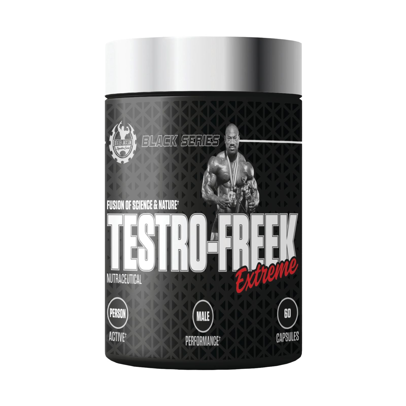 Fuel your fitness journey with Dexter Jackson Black Series Testro-freek Extreme 60 Veg Capsules. Try Testro-Freek Extreme today! Dexter Jackson Black Series Testro Freek Extreme 60 Veg Capsules BLACK SERIES TESTO FREAK is a men's testosterone booster. This advanced formula naturally supports male performance, endurance, strength and testosterone, with the added benefit of hormone regulators. *