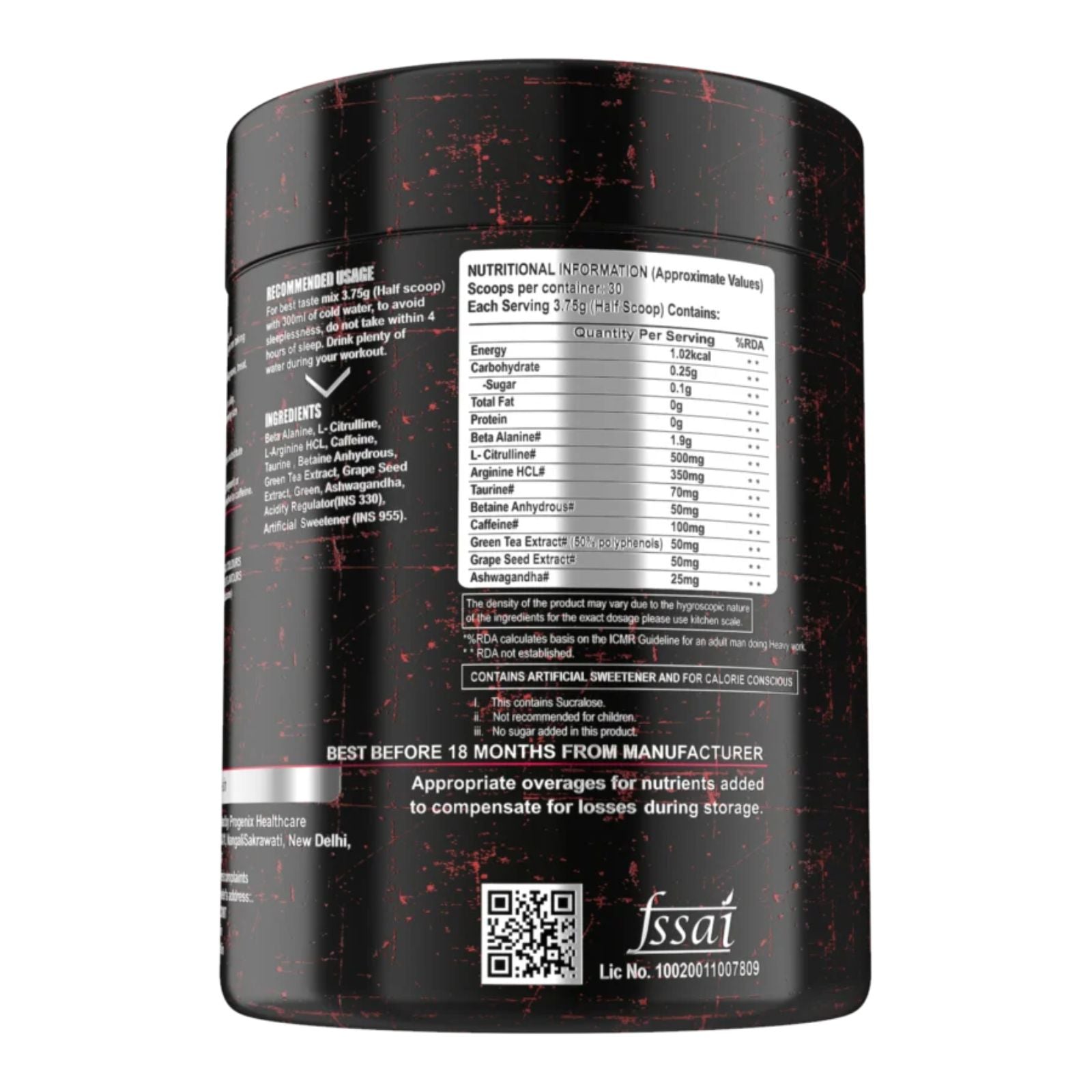 For best taste mix 3.75g (Half scoop) with 300ml of cold water, to avoid sleeplessness, do not take within 4 hours of sleep. Drink plenty of water during your workout.