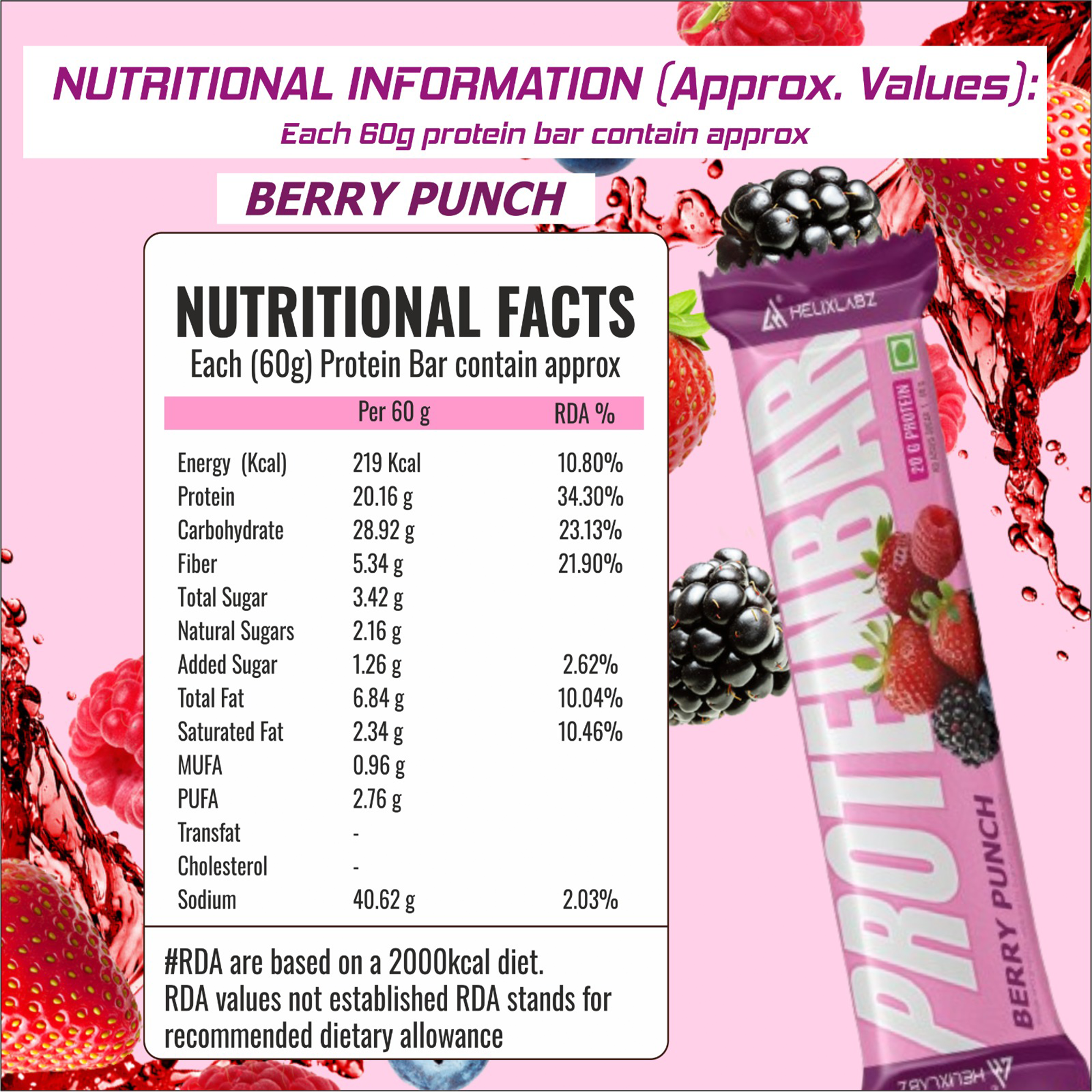 Helix Labz Protein Bar (20g Protein, Berry Punch), Pack of 6 Bar