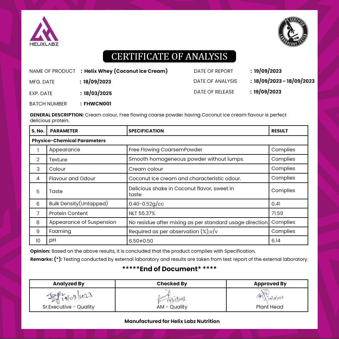 Helix 100% WHEY Protein Matrix – Coconut Ice Cream | 2kg (4.4LBS) | High Protein