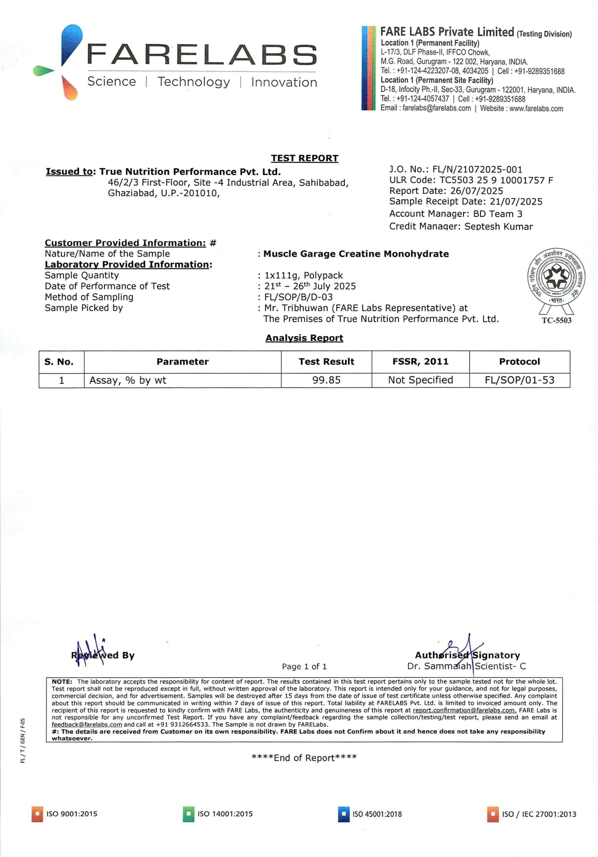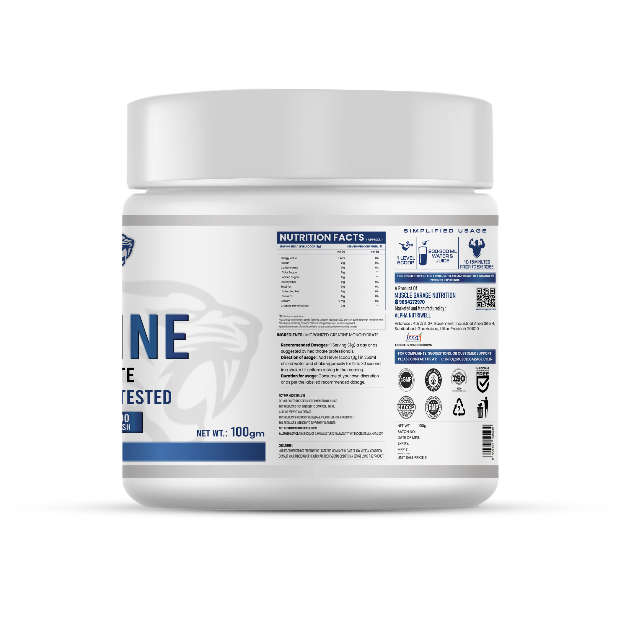 MG Creatine Monohydrate Powder – 100g (33 Servings) | Ultra Pure HPLC-Tested